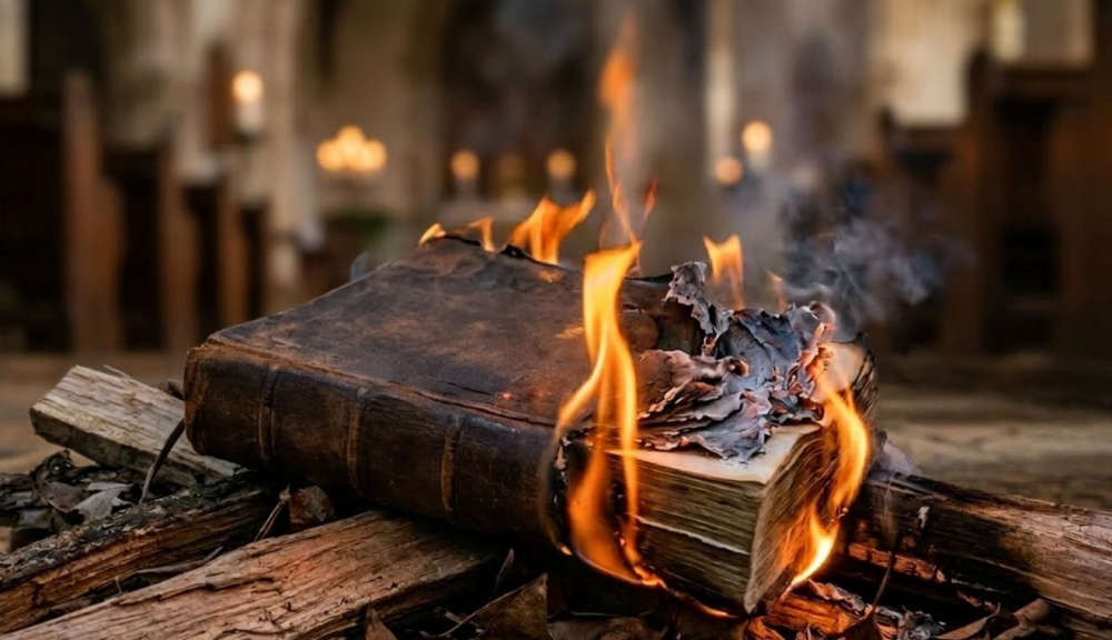 Burning bible damages church